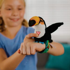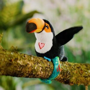 Zabawka posiada samo zapinającą się bransoletkę, dzięki której można ją nosić na ręce i mieć zawsze przy sobie. Tukan wykonany jest z miękkiego, bezpiecznego materiału, idealnego do przytulania.