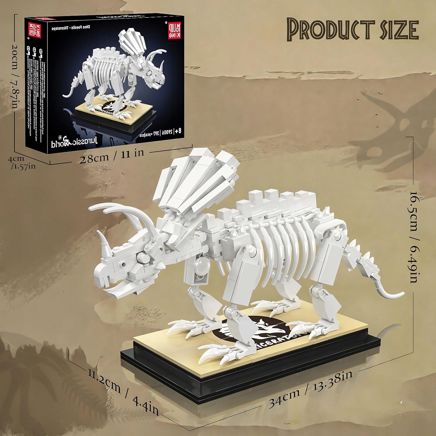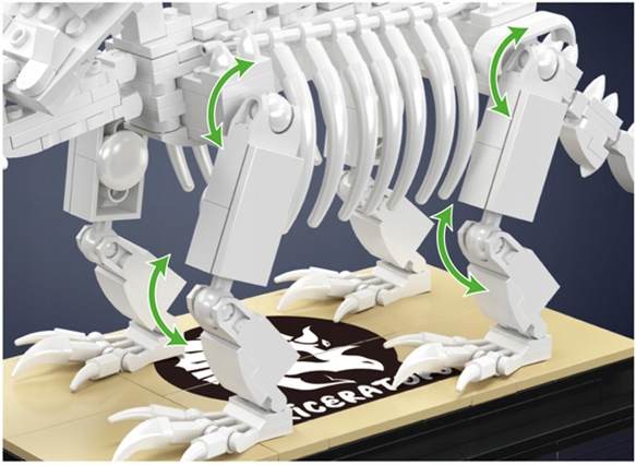 - Realistyczna tekstura: Klocki imitujące kości zostały odlane w kolorystyce świetnie oddającej naturalny odcień prehistorycznych skamielin.