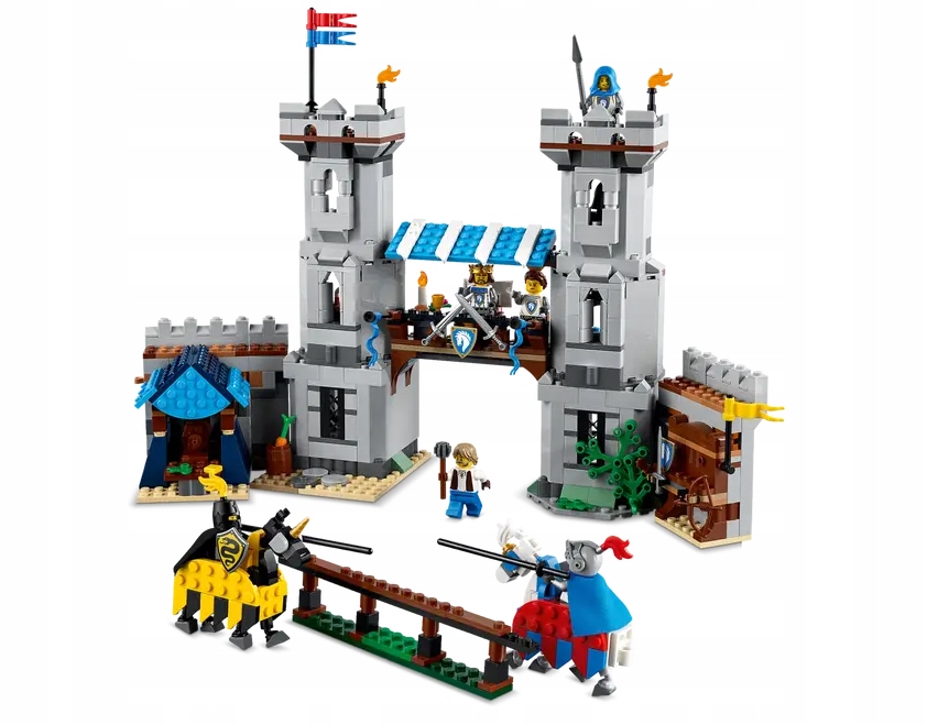 - Prawdziwe 3 w 1: Z tych samych klocków zbudujesz jedną z trzech imponujących konstrukcji: potężną twierdzę, arenę turniejową z trybunami lub średniowieczne miasteczko z wiatrakiem.