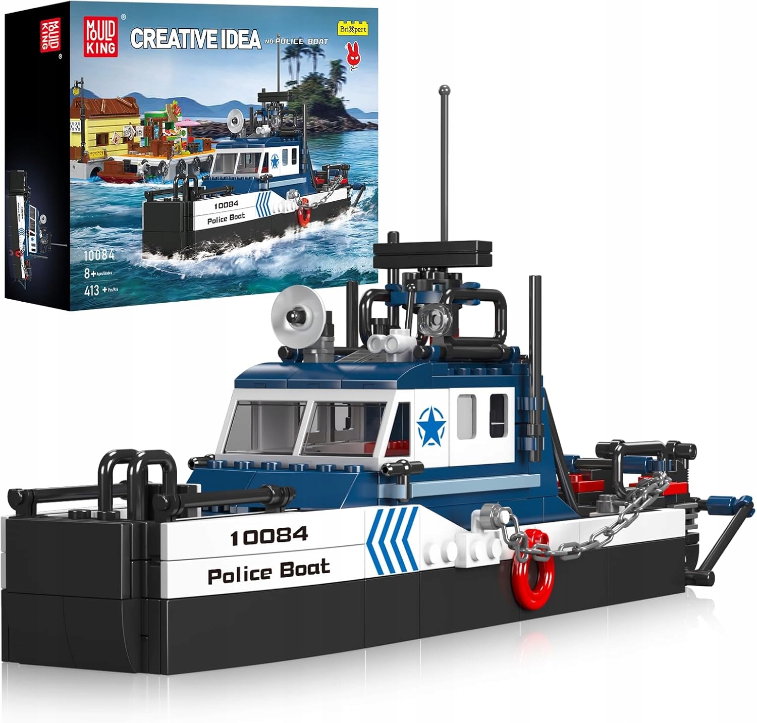 Klocki Mould King 10084 Łódź Policyjna Statek 413 el. Zestaw dla Dzieci