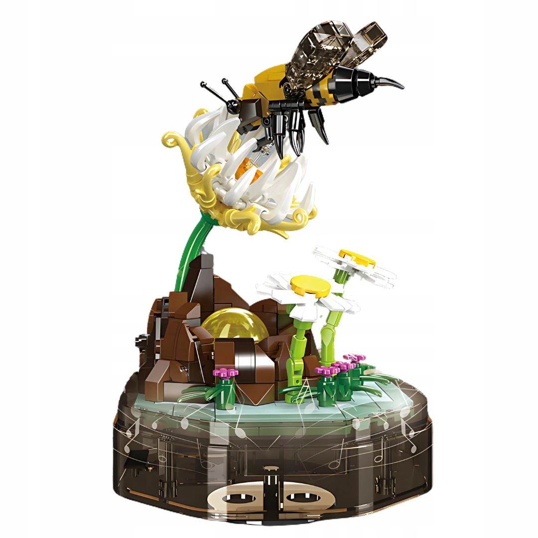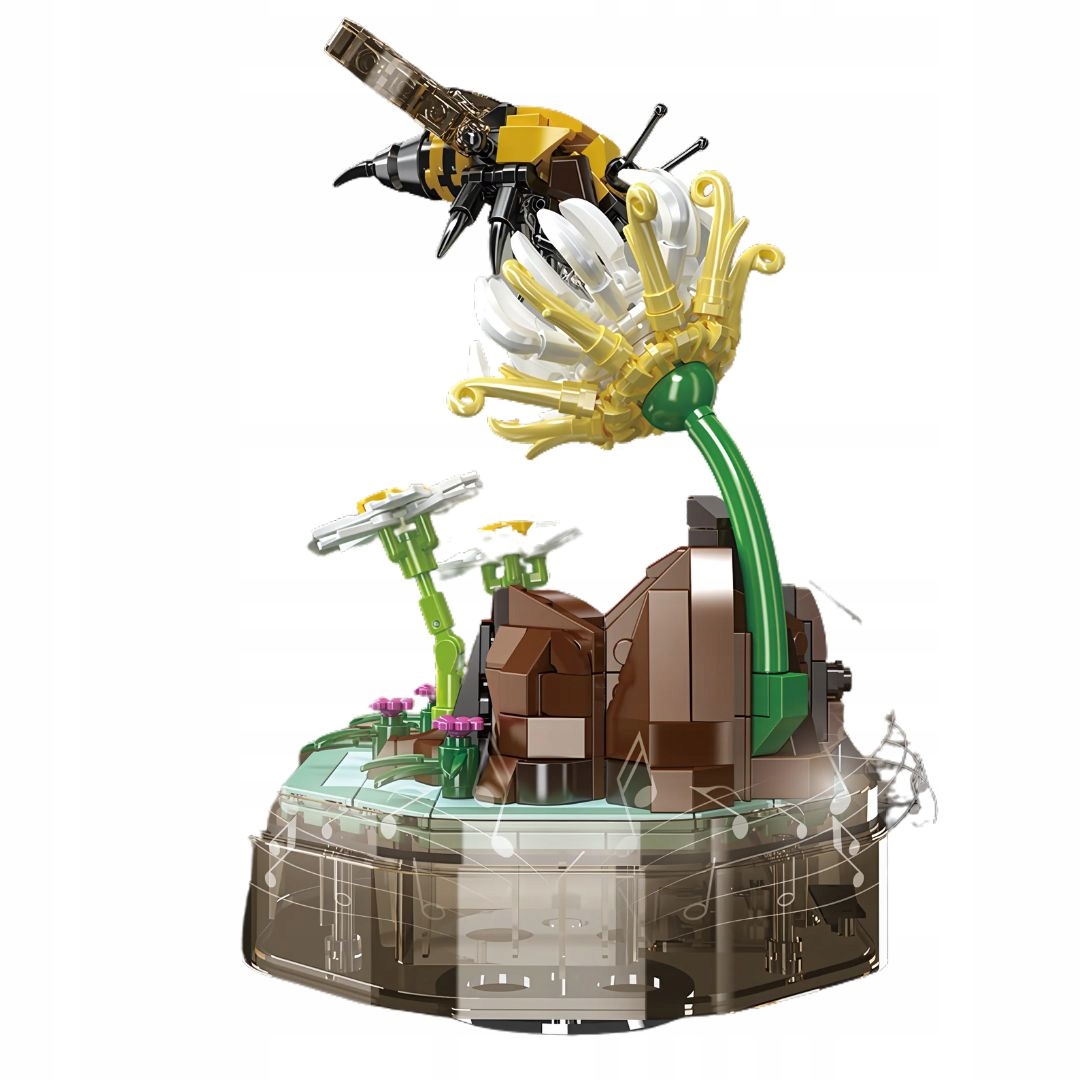- Ruchoma konstrukcja: Gdy gra muzyka, cała scena ożywa – konstrukcja z pszczołą i kwiatami obraca się, imitując taniec owada nad łąką.