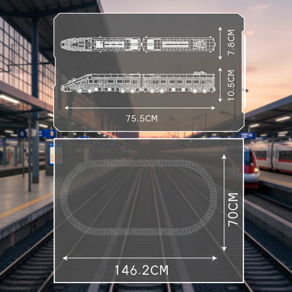- Imponująca długość: Cały skład ma aż 76 cm długości! To smukła maszyna, która pięknie prezentuje się na torach.