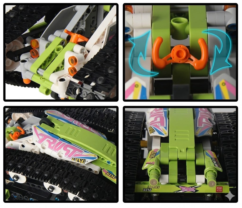 Gdy kończy się droga, zaczyna się misja dla Mould King 13153. Ten zestaw to 836 elementów, z których zbudujesz zaawansowany pojazd gąsienicowy o wyglądzie rodem z filmów Science-Fiction. To nie jest zwykła zabawka na kółkach. To mobilna platforma badawcza, napędzana potężnymi silnikami, stworzona do pokonywania przeszkód, których inne modele się boją. Połącz inżynierię z elektroniką i przejmij kontrolę nad łazikiem, który wygląda jakby właśnie wrócił z misji na Marsie.