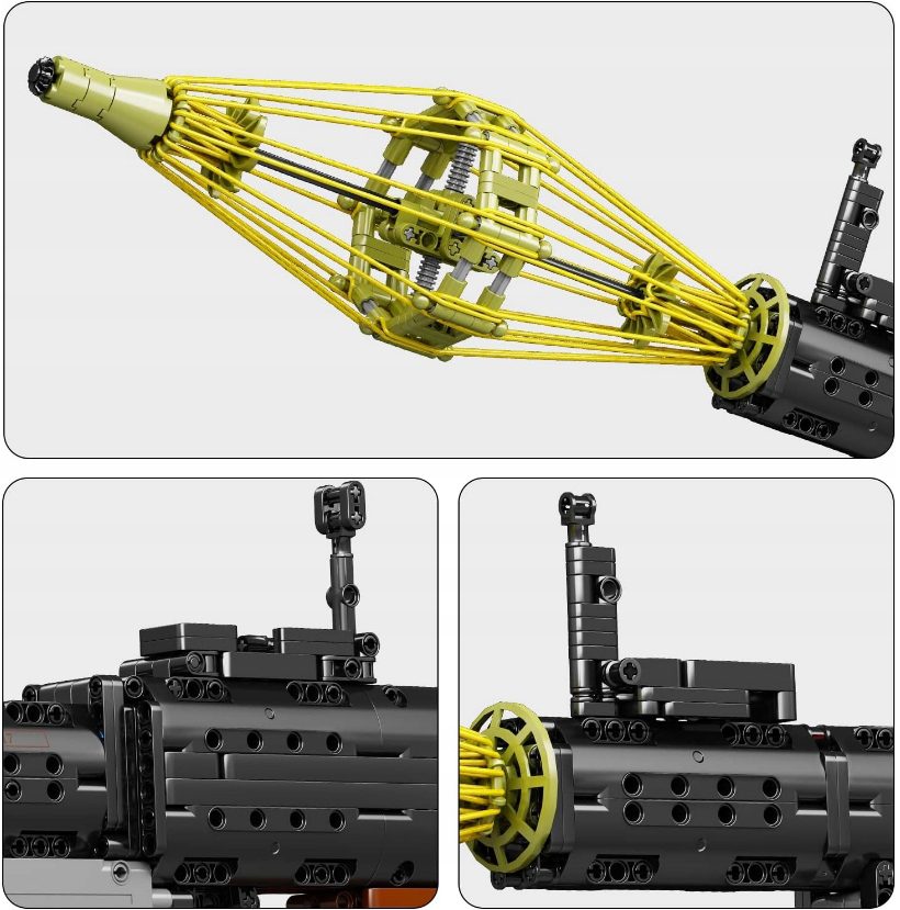 Ten zestaw to szczytowe osiągnięcie w dziedzinie replik z klocków. Z 1706 elementów zbudujesz model, który ma wymiary niemal identyczne z prawdziwym RPG-7. Konstrukcja wiernie odwzorowuje wszystkie detale, od charakterystycznej osłony termicznej po celownik optyczny (zbudowany z klocków). Ale to mechanika jest tu najważniejsza.