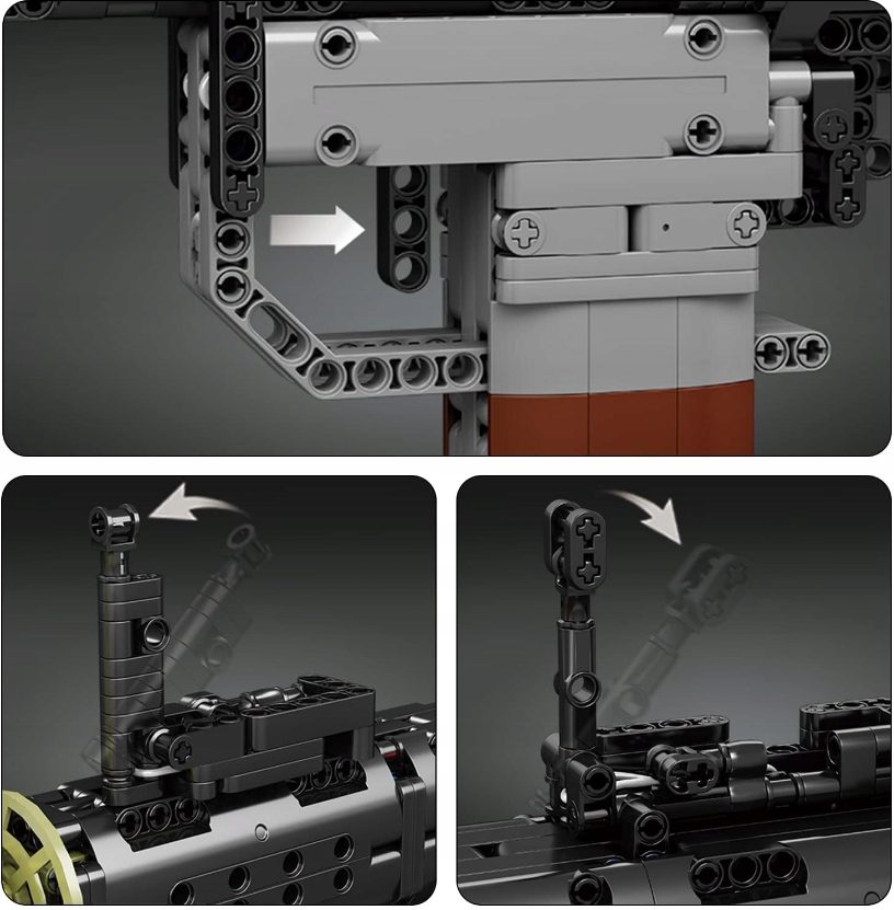 Model posiada symulowany mechanizm ładowania (wkładany „pocisk”) oraz działający spust. Po naciśnięciu, mechanizm strzelający wystrzeliwuje bezpieczny, klockowy pocisk. To model, który łączy pasję modelarską z fascynacją inżynierią.