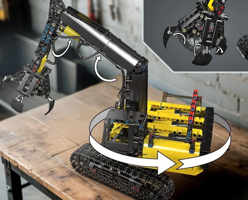 Ten zestaw to prawdziwa gratka dla wszystkich fanów maszyn budowlanych i skomplikowanych mechanizmów. Z 866 klocków powstaje imponujący model koparki przeładunkowej, inspirowanej maszynami pracującymi na placach budowy czy złomowiskach. Model wyróżnia się realistyczną mechaniką działania – posiada obrotową o 360 stopni wieżyczkę oraz wieloprzegubowe ramię, które można podnosić, opuszczać i zginać.
