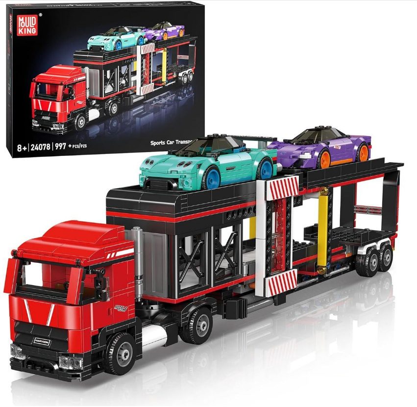 Załaduj swój sportowy wóz i ruszaj w trasę! Mould King 10219 to idealny zestaw dla każdego, kto kocha zarówno potężne ciężarówki, jak i szybkie samochody.