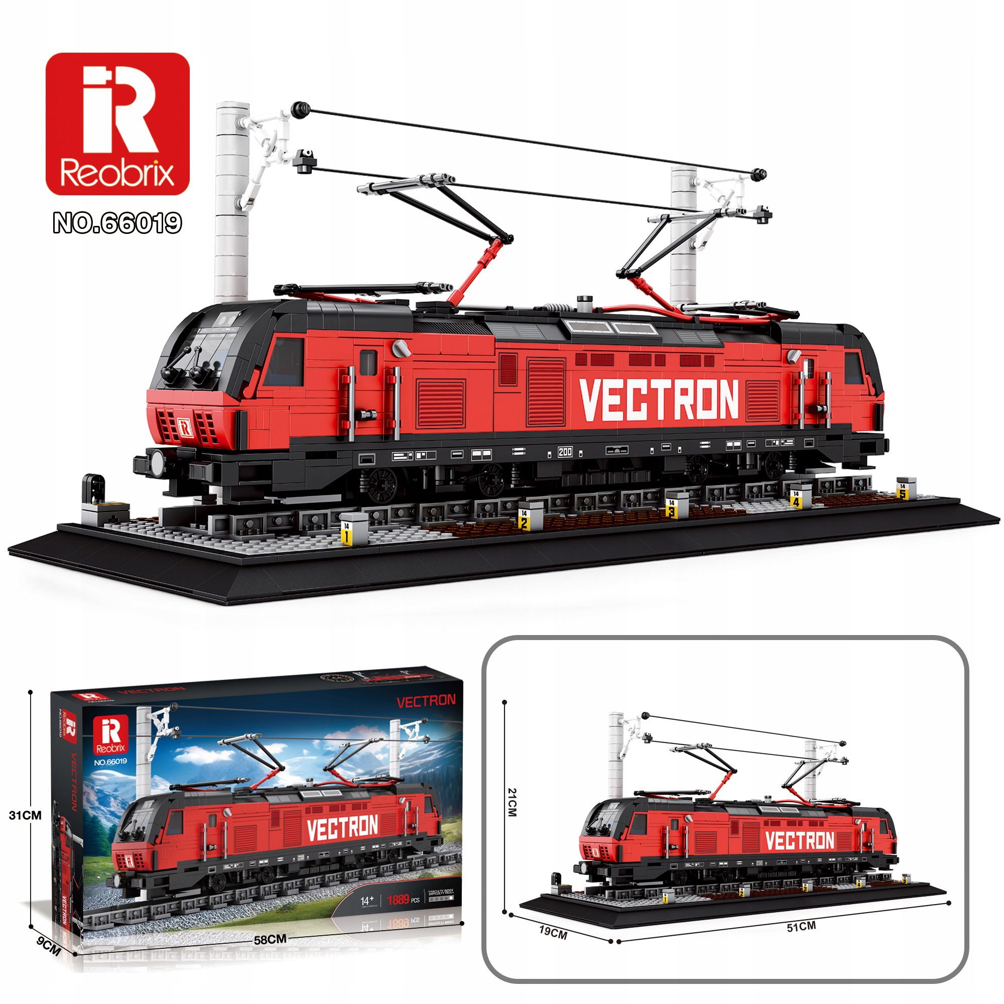 Klocki Reobrix 66019A Lokomotywa Wielosystemowa Vectron to zaawansowany zestaw konstrukcyjny, który pozwala stworzyć imponujący model nowoczesnej lokomotywy elektrycznej. Zestaw zawiera 1889 elementów, wykonanych z wysokiej jakości plastiku ABS, co zapewnia trwałość, precyzję i estetykę wykonania. Model bazuje na rzeczywistej lokomotywie Siemens Vectron, wykorzystywanej w transporcie pasażerskim i towarowym w wielu krajach Europy.
