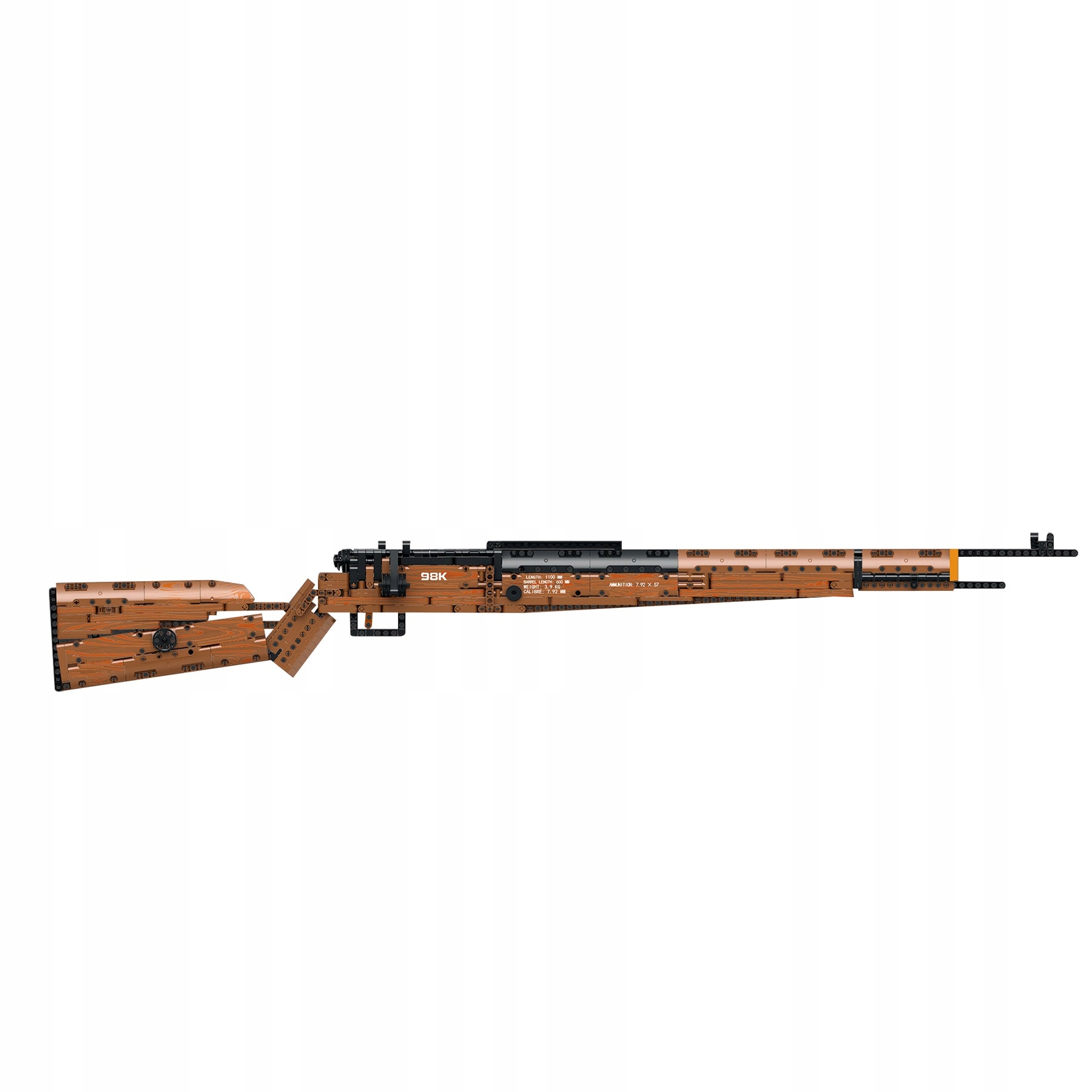 - Wyzwanie 951 elementów: Gęsta, zwarta konstrukcja zapewnia długie godziny angażującego budowania i gwarantuje, że gotowy karabin jest sztywny i nie rozpada się w rękach.