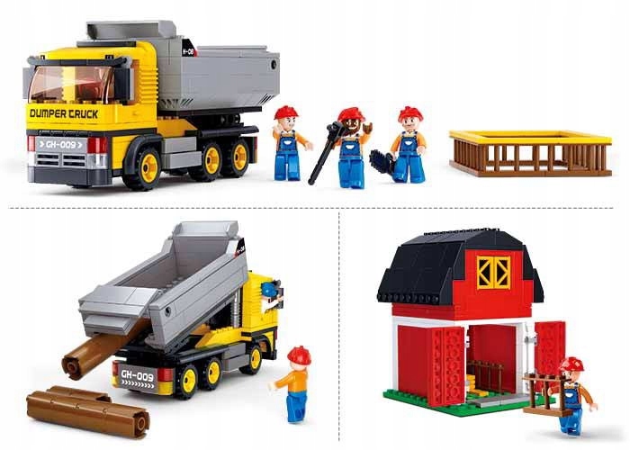Klocki Sluban B0552 Auto z Wywrotką i Stodoła 384 el.