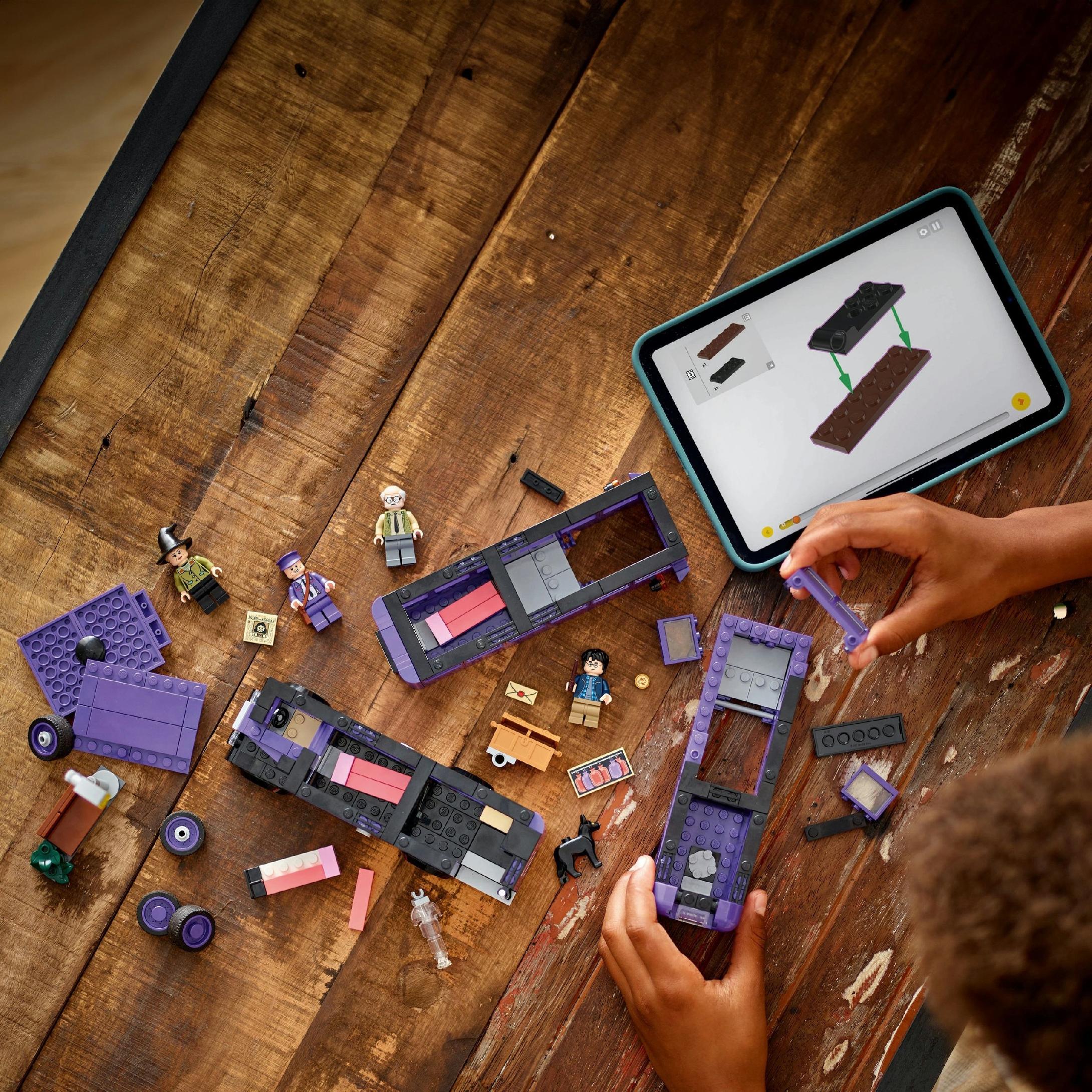 Wystawiłeś rękę z różdżką? No to trzymaj się poręczy! Z hukiem i piskeim opon nadjeżdża zestaw LEGO Harry Potter 76446. To 499 elementów, z których zbudujesz trzypiętrowy, jaskrawofioletowy autobus dla czarodziejów i czarownic w tarapatach. To nie jest zwykła komunikacja miejska. To szalona jazda bez trzymanki, gdzie łóżka jeżdżą po podłodze, żyrandol buja się we wszystkie strony, a Londyn rozmywa się za oknem. Zbuduj ikonę z „Więźnia Azkabanu” i zabierz Harry’ego w podróż do Dziurawego Kotła.
